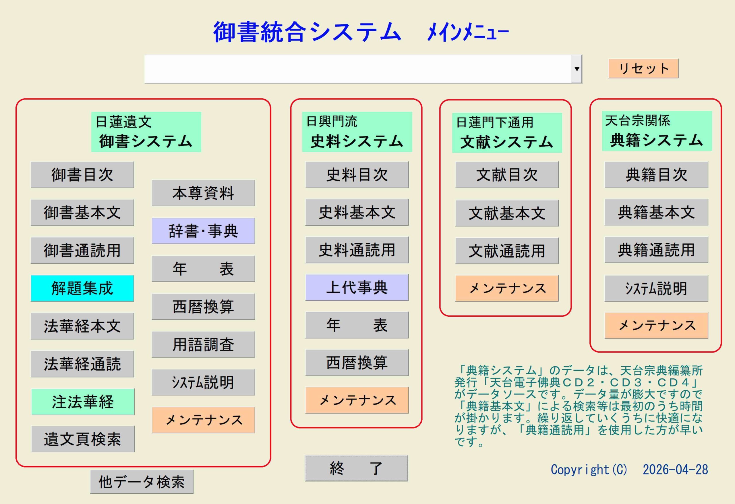 昨年(2025年版)のバージョンアップで大きくリニューアルした画面の構成・レイアウトについては、『御書統合システム』の使い方マニュアル(ファーストガイド)を本ホームページ上にて公開しております。ご活用下さい。