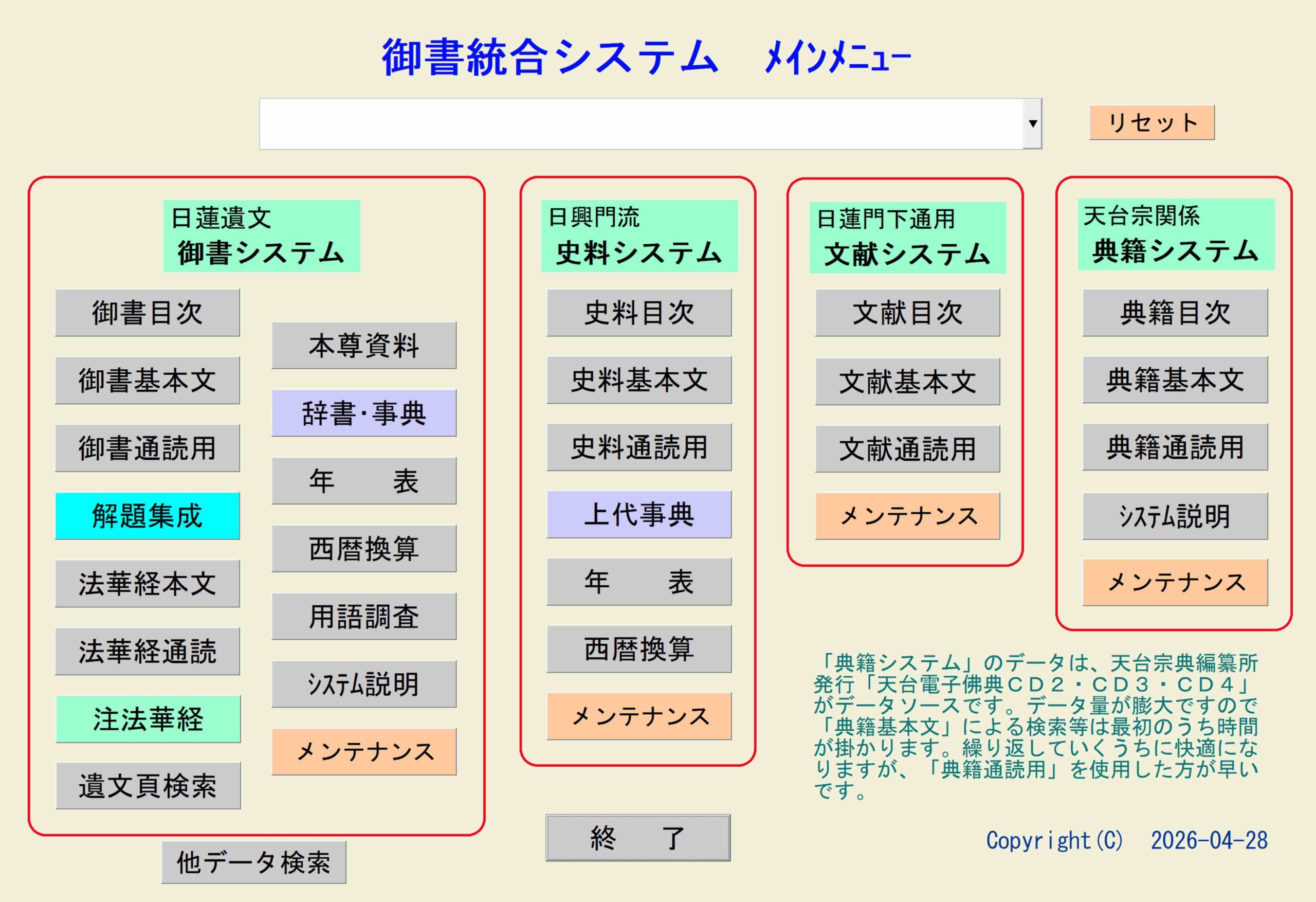 2025年にリニューアルした『御書統合システム』ならびに新ホームページをご活用頂き誠にありがとうございます。この度、『御書統合システム2026年版』、『御書システム2026年版』の公開にあたり、ご挨拶を申し上げます。