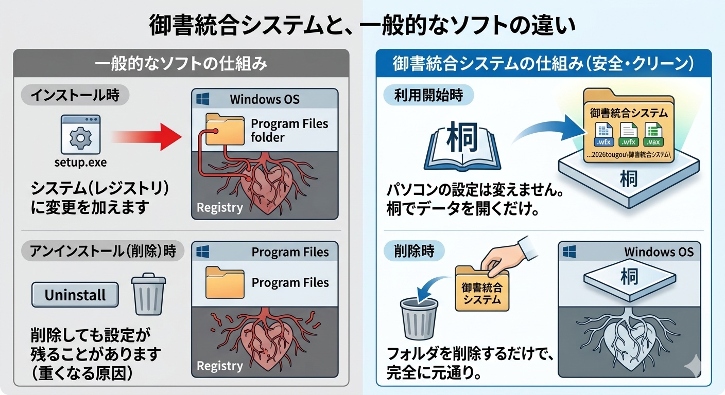 本システムはレジストリを書き換えることのない安全なソフトです。