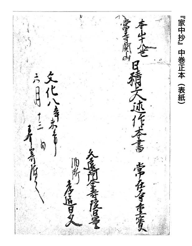 『家中抄』の伝存状況は、その正本が上巻(二丁前欠)と中巻(草稿本)のみが現存するとしてきた。その根拠は『富士宗学要集』第五巻・『富士学林教科書 研究教学書』第六巻によるものである。